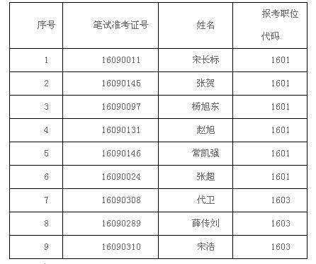 各有关考生: 按照招聘公告,通过笔试、面试、考核,以下9名考生可进行递补。请进入递补的考生于2016年11月23日上午7:30前带身份证到怀远实验中学门前集合参加体检,费用自理。逾期不候,视为自动放弃。 进入递补体检人员名单: