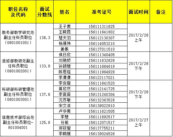 根据公务员录用工作有关规定,现就2017年国家行政学院录用公务员面试有关事宜通知如下: 一、面试分数线及进入面试人员名单