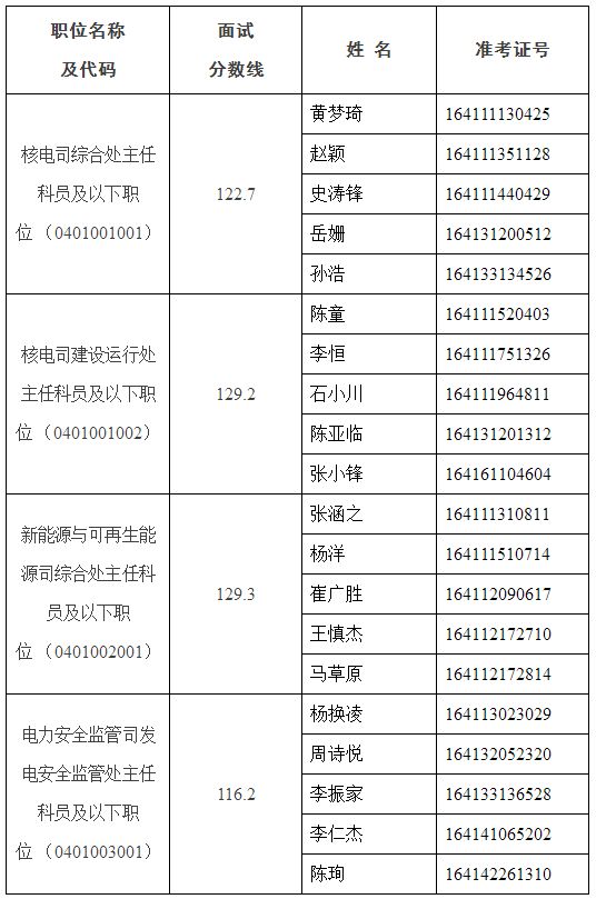 根据公务员录用工作有关规定,现就2017年国家能源局录用公务员面试确认和资格复审有关事宜通知如下: 一、进入面试人员名单(未经考生本人确认)