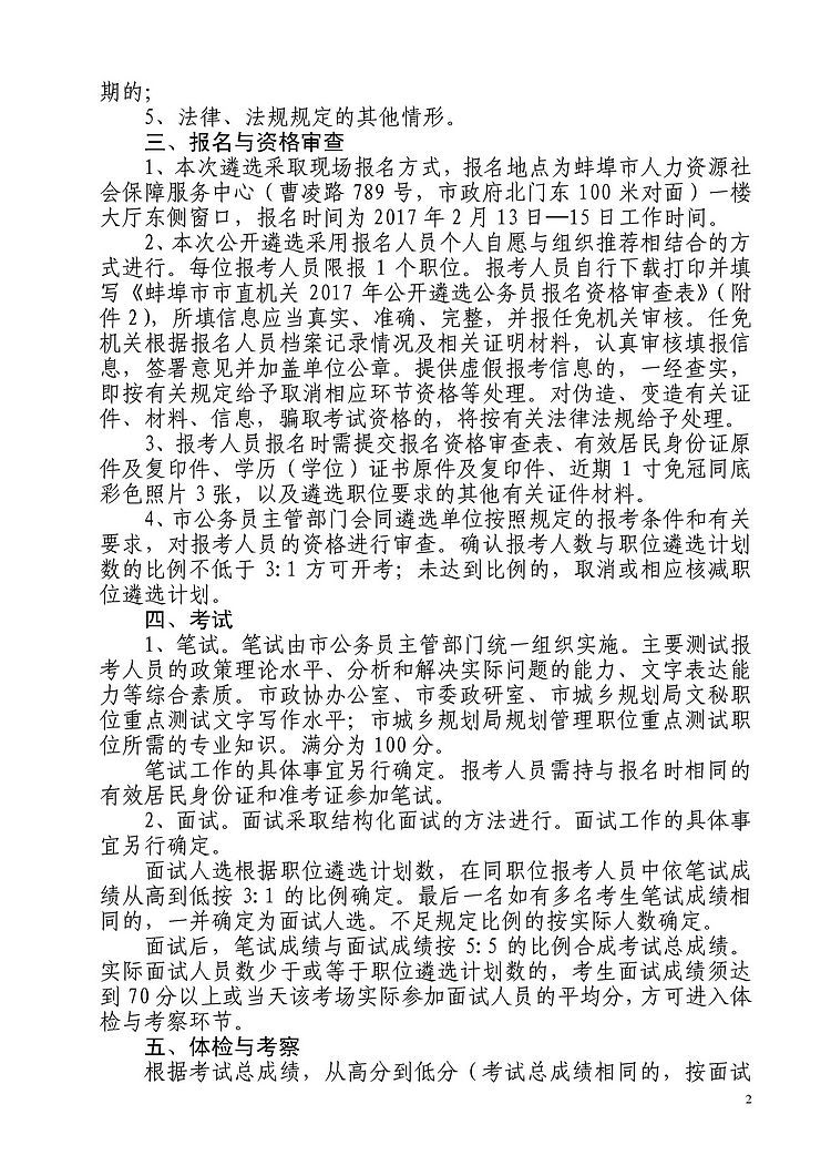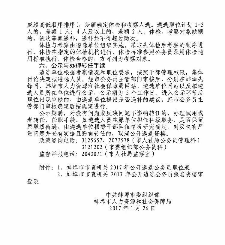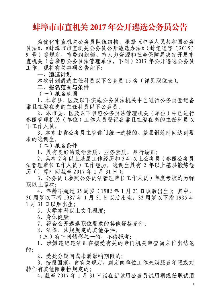蚌埠市市直机关2017年公开遴选公务员公告