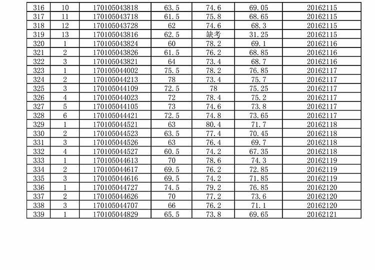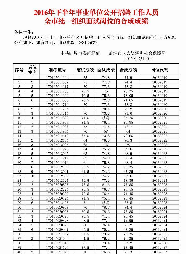2016年下半年事业单位公开招聘工作人员全市统一组织面试岗位合成成绩