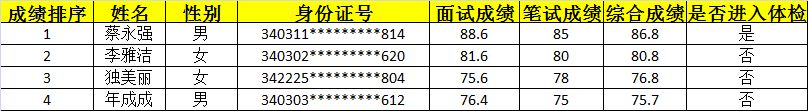 经过笔试、面试,按照综合成绩由高到低排序,现将公开招聘结果成绩及进入体检人员名单进行公示,体检时间另行通知。 1.产品开发岗位