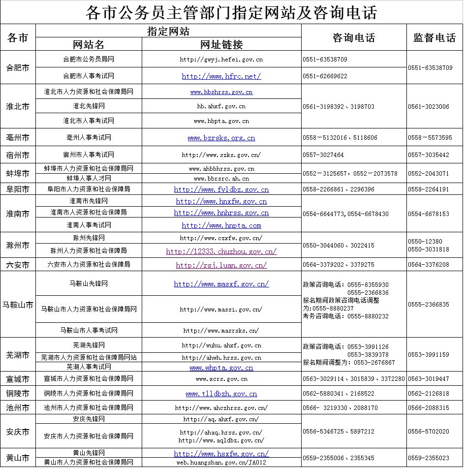 2017年考试录用公务员各市公务员主管部门指定网站及咨询电话